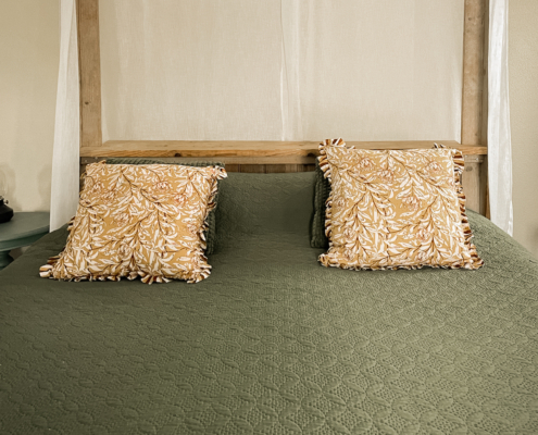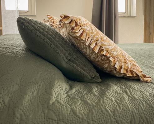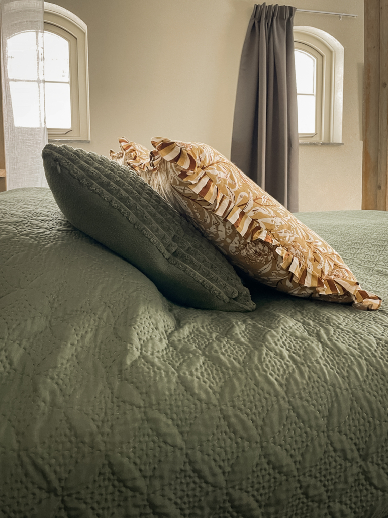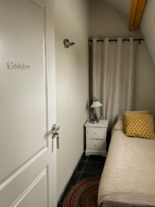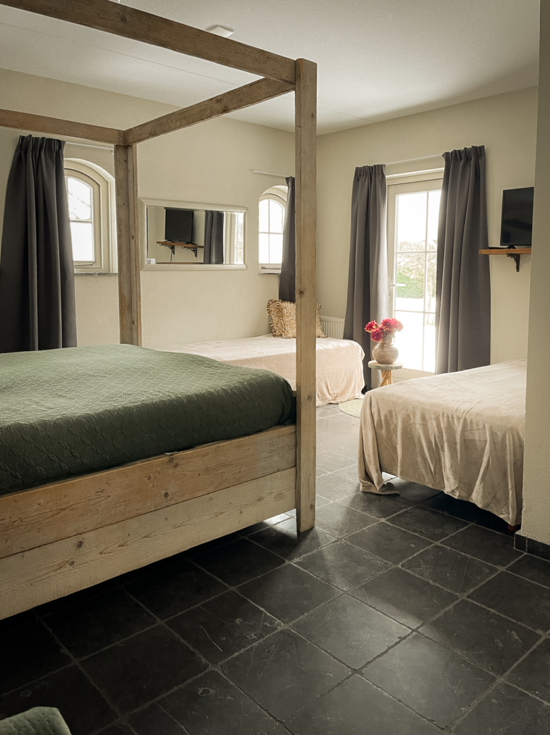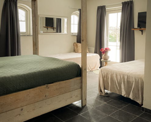 Daarnaast staan er 2 1-persoonsboxsprings op de kamer. Zodat je er met 4 personen kan slapen.